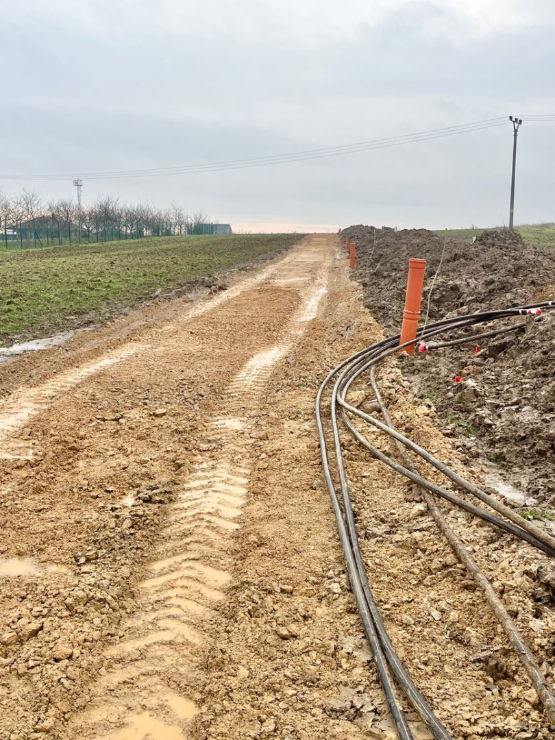 Realizácia rozšírenia elektra ako aj prvej etapy cesty je už vo výstavbe od decembra 2025. Podieľajú sa na nej všetci majitelia pozemku rovným dielom 1/6.
